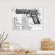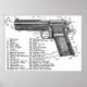 Uma imagem vintage de um diagrama de armas para uma arma de calibre 45 semiautomática.