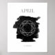 Esta impressão de arte apresenta um esboço de madeira de cor-de-água negra e um esboço de pedra de diamante gráfica para a pedra de nascença de abril.