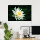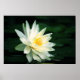 Um lírio de água branca tenra ansiosamente busca os raios do sol nesta delicada fotografia.