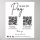 Em um estilo moderno minimalista, uma simples varredura personalizada de negócios brancos para pagar com o sinal de pedestal de código QR. O modelo adaptável é facilmente personalizável com códigos QR, texto personalizado, ícones de pagamento e ícones de mídia social.