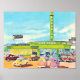 Colorida, nostálgica, poster da mercearia e restaurante da década de 1940.