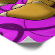 Um bebê triceratops bonitinho com a cabeça inclinada a sorrir para ti. Mostrado com um design floral sobre fundo roxo. O tamanho do poster é 16" x 16".