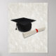 Dons personalizados e favoritos para festas com placa de boné de formatura e fita em preto, com um diploma enrolado com fita vermelha e um fundo de canvas. Personalize-o com seu nome, escola ou outro texto.