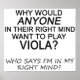Por Que Alguém Em Sua Mente Certa Quer Tocar Viola? Quem disse que estou na minha mente certa? Embora o lado criativo do cérebro seja o lado direito, isso não significa que os músicos tenham que estar em sua mente correta. Visite nosso site de temperamental para mais designs musicais!