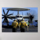 Os diretores de voo observam-se como pilotos de um Hawkeye E-2C acionando seus motores com aeronaves.