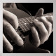 Esta pintura de óleo hiperrealista feita por Jeff Bartels mostra um homem tocando violão elétrico. A imagem bem cortada, preta e branca retrata a mão esquerda do homem no conselho como se tocasse notas muito altas. Luz forte e sombras junto com o corte apertado dão a esta pintura uma sensação impressionante e dramática.