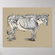 Um esqueleto de vaca antigo de um livro antigo dos anos 1800, mostrando todas as partes interessantes da vaca.