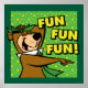 Traga a diversão com este design do Urso Yogi! Apresentando o sempre alegre Yogi em uma pose lúcida ao lado de um texto ousado e dinâmico lendo "FUN FUN FUN!" esse vibrante trabalho de arte estoura com energia. O brilhante fundo verde e bolinhas amarela acrescenta uma sensação retrorativa de animação, fazer-a perfeita para fãs de charges clássicas e personagens alegres. Seja você um fã de longa data do Yogi Bear ou apenas ame designs nostálgicos e excitantes, este trabalho de arte pode espalhar sorrisos e positividade!