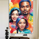 Um poster brilhante e alegre com rostos felizes da África, do México e da Ásia Oriental. As pessoas sorriem e vestem roupas tradicionais coloridas. O fundo está cheio de salpicos de aquarela macios em todos os tipos de cores brilhantes, fazer tudo pareça animado e divertido. Esta poster celebra o quão legal é que pessoas de diferentes culturas se juntem!