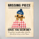 Esta é uma poster faltando para uma peça de quebra-cabeça de serra. Onde está? Está debaixo da cadeira, preso ao seu pé, na barriga dos gatos - é tudo um mistério. Se você é fã de fazer quebra-cabeça de quebra-cabeça você saberá o que quero dizer. Este poster pode ser personalizado, basta mudar o texto na parte inferior. Por exemplo, poderiam dizer: "Procurando o meu lugar legítimo na quebra-cabeça da minha vida".