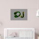 Criação legal da MixedWorld para o DJ. A palavra dj em cores preta, verde e amarela, com fone de ouvido como letra D