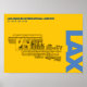 Perfeito para o entusiasta da aviação ou viajante frequente, este poster apresenta o elegante diagrama oficial do aeroporto internacional de Los Angeles ao lado do familiar código de três letras do aeroporto e o nome e coordenadas do aeroporto. Pode ser montado na horizontal ou na vertical.