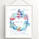 Despacha-te para uma aventura oceânica no berçário do teu filho. Este tema náutico bonitinho apresenta criaturas submarinas de cor clara, barco, farol e outras maravilhas favoritas à beira-mar. Altere facilmente seu próprio nome e, se desejar, altere o estilo da fonte, o tamanho da cor e o posicionamento.