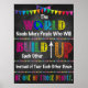 O MUNDO PRECISA DE MAIS PESSOAS QUE SE CONSTRUIRÃO EM VEZ DE SE ATIRAREM. SEJA UMA DESSAS PESSOAS. Uma bela maneira de exibir citações elevatórias e lembrar a si mesmo e aos estudantes que SERÃO UMA DESSAS PESSOAS. Um poster Excelente para preencher salas de aula, escritórios, quartos e muito mais com mensagens anti-bully e bondade! Faz um presente incrível para qualquer assistente social, professor, conselheiro ou pessoa no campo relacionado a serviços. Apresenta um fundo de quadro negro e cores brilhantes para captar a atenção do aluno.