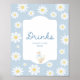 Mantenha a festa fluindo com este sinal azul de ganso de bobo e bebidas margaridas — uma maneira atraente de guiar os convidados para a estação de bebidas no seu chá de fraldas.