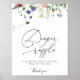 Sinal temático da Fralda Raffle Chá Game. Enquadrado por flores silvestres de aquarela. Se desejar, personalize com o seu texto.
