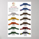 Este poster de classificação de cinta é excelente para qualquer escola, sala de crianças ou sala de exercícios. O poster exibe White Belt através de 1 rua Dan Black e lista os requisitos de teste para cada correia.