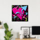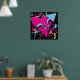 Este poster retrorreflector apresenta uma pintura colorida com um coração cor-de-rosa e uma seta azul sobre um fundo preto.