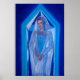 Uma linda noiva é suspensa no tempo dentro da aura azul brilhante de seu casulo de cristal cicatrizante. poster do "Crystal Dream" reproduzido da pintura mística original de Sue Halstenberg.