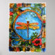 Dragonfly 2 - Uma das Crianças da Terra aquarela, Uma libélula vermelha brilha sobre uma lagoa de turquesa, celebrando as cores do verão com alegria.Poster, impressão.