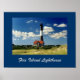 Vista do Farol da Ilha do Fogo num dia ensolarado. O Farol da Ilha do Fogo está localizado no extremo oeste desta ilha de barreira, ao largo da costa sul de Long Island. Excelente de impressão para a sua casa de praia, ou para manter Fire Island com você na cidade durante todo o inverno!