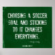 Este poster de futebol motivacional apresenta uma citação de futebol inspiradora sobre o sucesso rasgado por malhação de denim. A citação motivacional do futebol para jogadores de futebol, treinadores e motivação em equipe do autor e designer Felicity Luckey lê: "Escolher um objetivo de futebol e aderir a ele muda tudo" ~ Felicity Luckey.