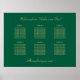 Poster de Gráfico de Assentos de Mesa bege 6 verde, personalize os nomes do casal e os nomes dos convidados juntamente com qualquer outro texto que você queira personalizar. Um quadro elegante com texto elegante na moda num tom ouro de bege (aparência falsa de ouro/ouro) em Hunter Green.