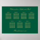Poster de Gráfico de Assentos de Mesa bege 7 verde, personalize os nomes do casal e os nomes dos convidados juntamente com qualquer outro texto que você queira personalizar. Um quadro elegante com texto elegante na moda num tom ouro de bege (aparência falsa de ouro/ouro) em Hunter Green.