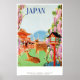 Poster de viagens vintage restaurada e aprimorada digitalmente mostrando uma paisagem japonesa com pagodes e um casal de cervejeiros. Imperfeições removidas. Cores corrigidas.