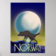 Impressão de Poster do Lobo-da-Noruega de um Lobo bonitinho, mas assustador, andando em frente a um lindo e grande Lua de cheio.