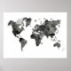 Poster do Mapa do Mundo Negro e Branco