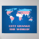 Poster de valor com mapa de stripes transgênero do arco-íris do mundo, design de bandeira trans no fundo azul, Vamos Change the World modelo, por pinkbrickroad