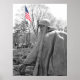 Esta poster apresenta uma fotografia a preto e branco do Memorial dos Veteranos da Guerra Coreanos em Washington, D.C., realçada por uma bandeira americana de cor de cheio.