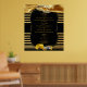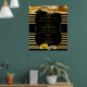 Uma luxuosa textura de seda dourada esfregada através de dois anéis de casamento sobre um fundo preto dramático com uma faixa de estilo Deco para dar ao design um visual chic e glamouroso para personalizar o menu poster