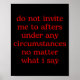 Poster Do Not Invite Me To Afters Under Any Cirstances No