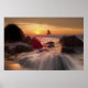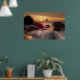 Apresentando um fôlego considerando um pôr de sol laranja sobre o topo do oceano e as ondas atingindo a costa do oceano. esta é uma bela foto nesta poster