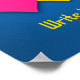 Papel poster (Semibrilho) com design de corações em cores de pansexualidade; bandeira do orgulho panar cor-de-rosa, amarela e azul; design de amor do arco-íris sobre fundo azul