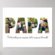 Esta é uma colagem de fotos que soletra a palavra PAPA junto com uma mensagem personalizada. Este é o presente perfeito para o pai do dia do pai, do seu aniversário ou do Natal.