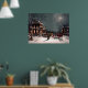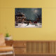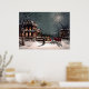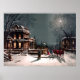 Esta imagem de natal vintage mostra uma cena de lua de neve enquanto os convidados chegam de cavalo e trenó para uma festa de Natal no brilhante fazer da Mansão Vitoriana, um poster de Natal excelente.
