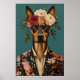 Poster do Pinscher Dobermann de Terno, Retrato do Pinscher Dobermann, Pintura a Óleo do Pinscher Dobermann, Poster de Cabeça de Animal com Corpo Humano, Poster de Cachorro