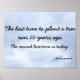 Um poster de inspiração que pretendia motivá-lo a fazer o que você precisa fazer o mais rápido possível. O crescimento só começará a acontecer quando você plantar a árvore.