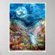 Alto de um penhasco, a vista da lua em um rio bem abaixo é decorada por sinais dos muitos que viajaram para lá. Poster, impressão.