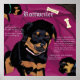 Poster de pintura digital de arte de filhote rottweiler com informações do Rottie incluindo história, características e tamanho
