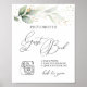 Foto: Poster de Sinal de Casamento de Guestbook com folhagem verde e dourada em estilo aquarela. No topo - confetti de efeito ouro e verde.