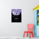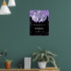 Um conselho de boas-vindas para uma menina e glamourosa Doce 16, 16ª festa de aniversário. Um fundo preto decorado com pingos de brilho de cor violeta, lavanda, pingos de tinta, balões. Personalize e adicione um nome e uma idade. Traseira: sem design