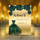 Um poster de boas-vindas para uma Doce 16, 16ª festa de aniversário. Um fundo de ouro falso com brilhos dourados falsos, um vestido verde esmeralda e rosas, florais. Personalize e adicione um nome.