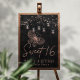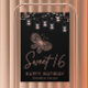 O doce Poster de aniversário moderno, Butterfly, com Rosa Dourada, com 16 anos, apresenta uma elegante borboleta de ouro rosa com luzes de cordas em um fundo preto com Sweet 16 em um roteiro elegante de caligrafia com "Feliz Aniversário" e personalizado com seu nome personalizado abaixo. Personalize editando o texto nas caixas de texto. Projetado para você por ©Evco Studio www.zazzle.com/store/evcostudio