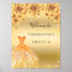 Poster Doce 16 roupas de brilho dourado florais bem-vindo