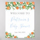 Placa de Boas-Vindas para combinar com meus artigos de papelaria de Chuveiro Laranja / Azul no mesmo design. Mostrado aqui para um Chá de Bebê, mas todo o texto é totalmente personalizável. Você pode adicionar ou excluir campos de texto.