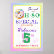 Bonito Rainbow Doughnut, Oh-So Special qualquer poster de aniversário de um ano. Personalize o texto você mesmo quando solicitar. Convite divertido para o aniversário do tema do arco-íris.